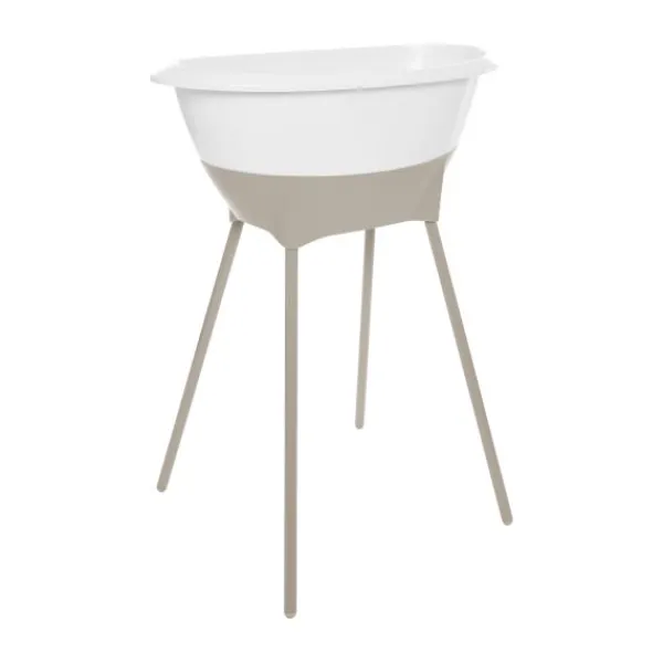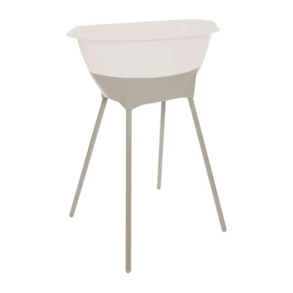 De bijgeleverde badstandaard tilt het badje naar een comfortabele werkhoogte, zodat jij je kindje kunt verzorgen zonder te hoeven bukken — goed voor je rug en houding. Het stevige kliksysteem zorgt ervoor dat het badje veilig op zijn plaats blijft. Na gebruik klik je de poten los, waardoor je de set eenvoudig en compact kunt opbergen.