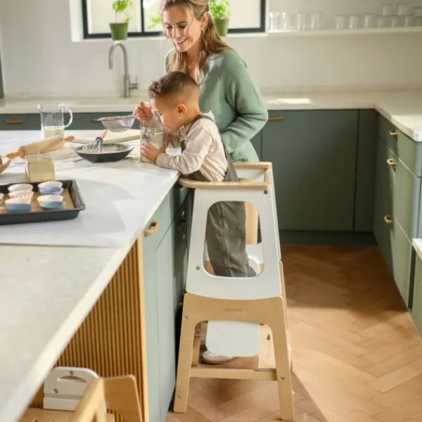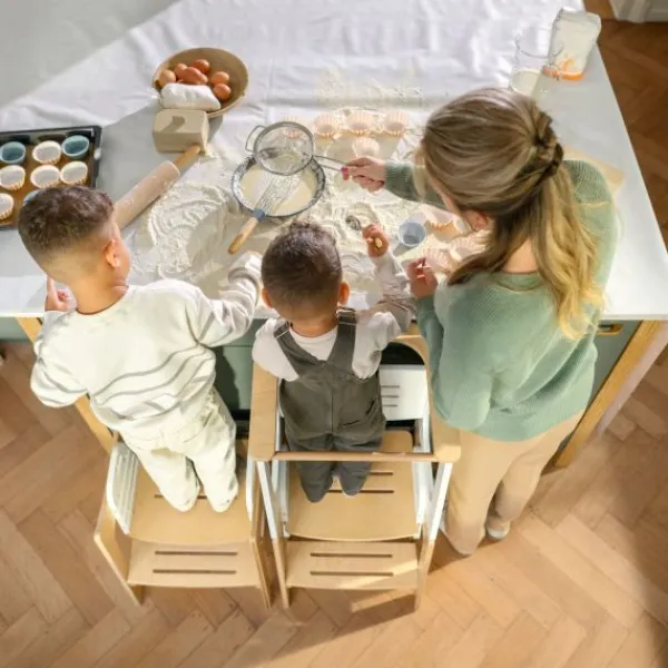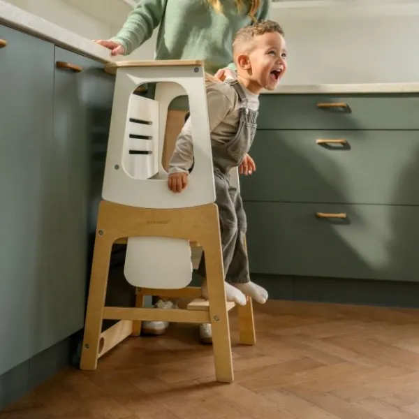 Comfort en gebruiksgemak staan centraal bij de Toucan 3-in-1 leertoren. Verstelbare hoogtes zorgen ervoor dat je kind veilig en comfortabel kan deelnemen aan familieactiviteiten, terwijl het geïntegreerde schoolbord een creatieve uitlaatklep biedt. Eenvoudige moduswisselingen maken de Toucan handig voor zowel ouders als kinderen, met een snelle draai die hem transformeert van leertoren naar tafel-en-stoel set, en uiteindelijk naar een praktisch opstapkrukje.