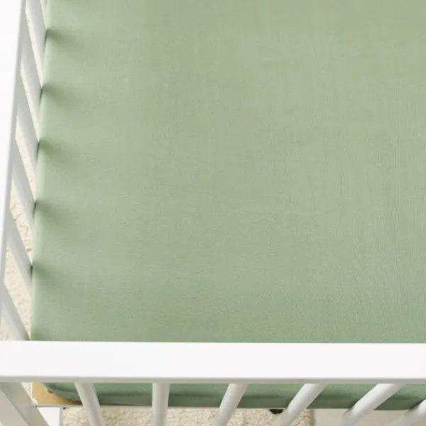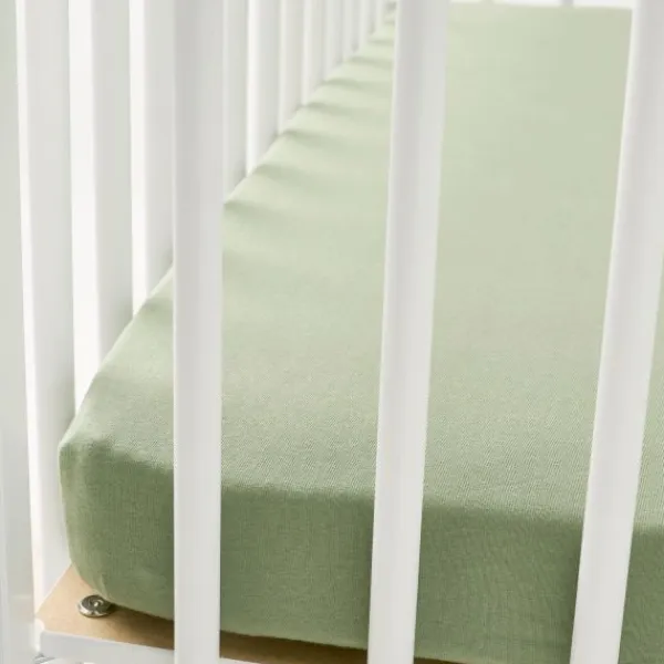 Dit hoeslaken heeft een afmeting van 75 x 95 cm en is speciaal ontworpen voor rechthoekige boxmatrassen. Het minimalistische design in olijfgroen geeft een rustige en moderne uitstraling aan de kinderkamer. Het laken is eenvoudig te combineren met andere babykameraccessoires en is ook nog eens makkelijk te wassen, wat het ideaal maakt voor dagelijks gebruik.