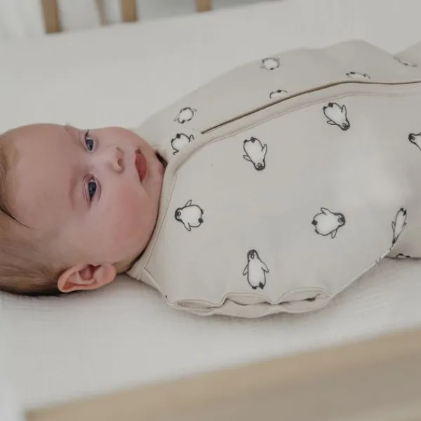 De Meyco Cocoon Inbakerslaapzak in de print Penguin Soft Sand is speciaal ontworpen om jouw kleintje een veilig en geborgen gevoel te geven tijdens het slapen. Het schattige pinguïnpatroon en de zachte zandkleur maken deze slaapzak niet alleen functioneel, maar ook een stijlvolle toevoeging aan je babyuitzet.