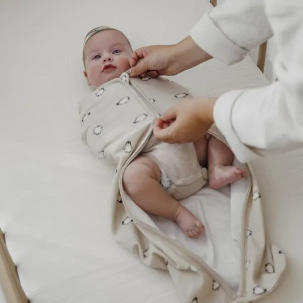 De inbakerslaapzak helpt onrustige slapers om beter te slapen door het natuurlijke schrikreflex te verminderen. Dankzij de zachte, ademende materialen en de comfortabele pasvorm ligt je baby heerlijk ontspannen. De rits over de hele lengte maakt verschonen eenvoudig en snel, zonder je kindje te veel te storen.