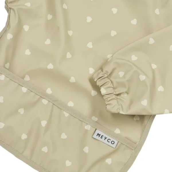 De Meyco Baby Mouwslab is een onmisbare must-have voor elke maaltijd of knutselmoment. Deze praktische slab met lange mouwen is uitgevoerd in een zachte sandkleurige tint met schattige hartjesprint (Sweet Heart Sand/Soft Sand) en biedt optimale bescherming tegen knoeien.