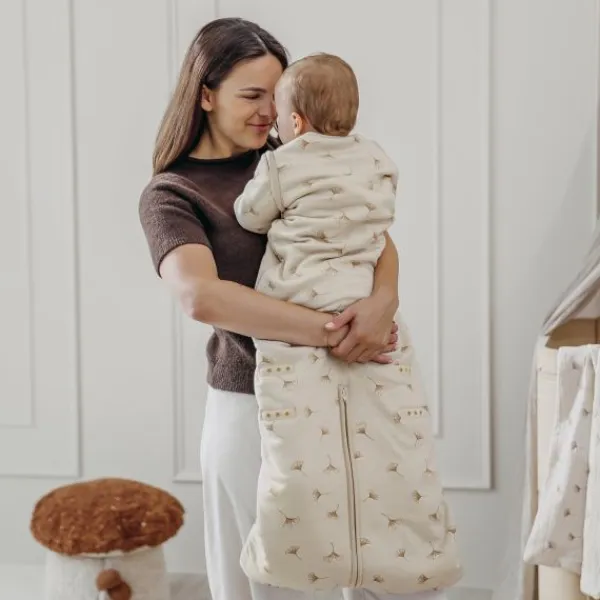 De Meyco Baby 4-Seizoenen Slaapzak Deluxe is dé alles-in-één oplossing voor elk seizoen. De slaapzak bestaat uit twee losse delen: een zomer- en een winterslaapzak die je eenvoudig met een rits aan elkaar kunt bevestigen. Het ontwerp in zachte sandkleur met Ginkgo-bladprint geeft een stijlvolle en rustgevende uitstraling aan het slaapmoment van je kindje.