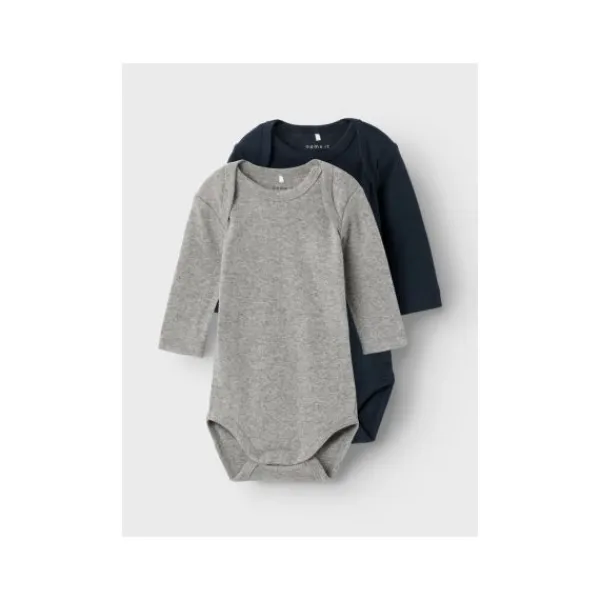Deze 2-pack grijze en donkerblauwe rompers zijn een echte musthave voor elk kleintje. De enveloppehals maakt aan en uitkleden makkelijk en ook de drukkers onderaan zorgen ervoor dat je je kleintje snel kan verschonen.