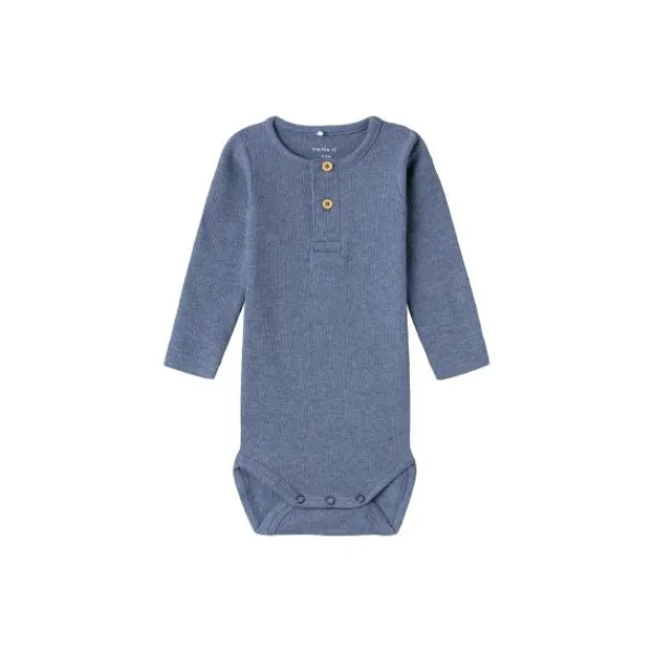 Deze mooie romper van Name It heeft lange mouwen en is van een zachte rib kwaliteit. De romper sluit met handige drukknoopjes aan de onderkant om het verschonen makkelijker te maken.