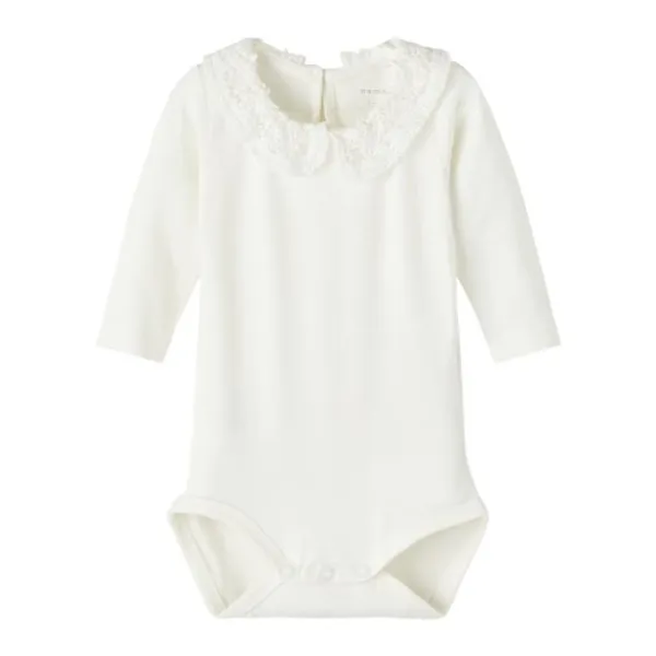 Deze witte romper heeft een super mooi gehaakt kraagje, wat perfect matcht met een mooi vestje of trui. De romper heeft een handige drukknoopsluiting onderaan voor het gemakkelijk verschonen van je kleintje.