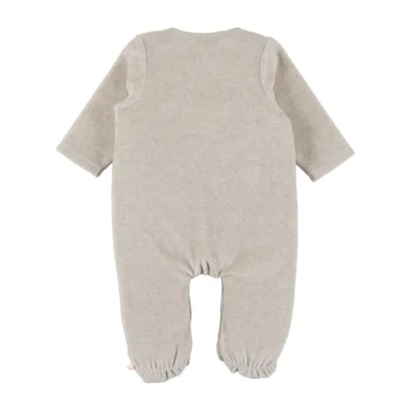 De dikke velours van 300 gr/m² is niet alleen heerlijk zacht voor de gevoelige babyhuid, maar ook duurzaam en bestand tegen veelvuldig wassen en drogen. De drukknopen aan de voorkant maken het aan- en uitkleden eenvoudig, zonder je baby te hoeven draaien – ideaal tijdens nachtelijke verschoonmomenten.