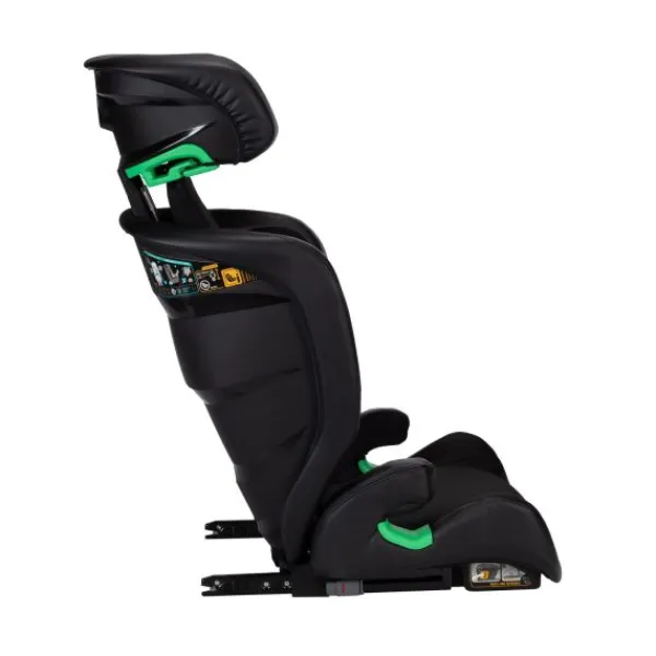 De autostoel beschikt over 16 verstelbare hoofdsteunhoogtes en twee zit/lig standen, waardoor hij mee kan groeien met je kind en comfort biedt voor langere ritten. De bekleding van de stoel is verrijkt met leatherette accenten, wat een vleugje luxe toevoegt terwijl het ook gemakkelijk schoon te maken is met een handwarm sopje en milde zeep.
