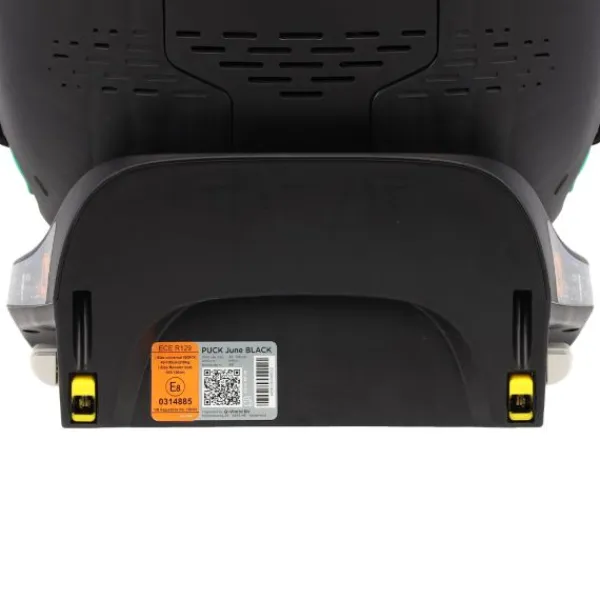 Veiligheid staat voorop bij de Puck JUNE-black. De autostoel is uitgerust met Isofix-bevestigingshaken en een verstelbare steunpoot aan de voorzijde, wat zorgt voor een stevige en eenvoudige bevestiging in de auto. Beide zijn voorzien van indicatoren voor een correcte installatie. De stoel kan zowel voorwaarts als achterwaarts worden gebruikt in de auto. Vanaf de geboorte tot 15 maanden is het verplicht het kind achterwaarts te vervoeren. De ergonomisch gevormde kuip met diepe zijkanten zorgt voor een solide bescherming en is voorzien van een 5-punts harnasgordel (geschikt tot 105 cm). Vanaf 100 cm berg je de 5-punts gordel op en wordt het kind vastgezet met de 3-punts autogordel. De Puck JUNE-black autostoel is goedgekeurd volgens de nieuwste Europese normen, de E8 i-Size norm R129/03.