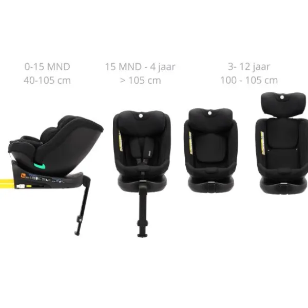 De Puck JUNE-black autostoel groeit mee met je kind en is geschikt voor de lengtes van 40 tot 150 cm, wat overeenkomt met een leeftijd van 0 tot 12 jaar. Dit betekent dat je met één autostoel de gehele verplichte periode om het kind te vervoeren in een autostoel kunt afdekken. De stoel is voorzien van een 360° draaifunctie, waardoor je het stoeltje naar de deuropening kunt draaien om je kind gemakkelijk in en uit de stoel te halen. Dit maakt het plaatsen en vastzetten van je kind eenvoudiger en ergonomischer.