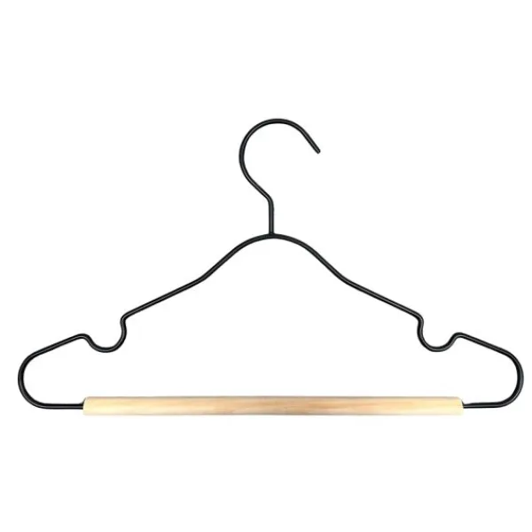Een praktische en hippe set van 6 kledinghangers. De combinatie van slank metaal en een houten onderzijde in een zachte clay‑kleur zorgt voor een subtiel contrast en elegante ophangoplossing voor truitjes, jasjes of jurkjes. etc.