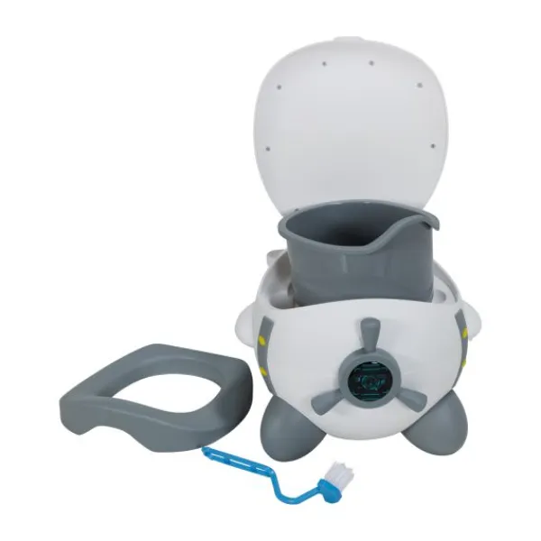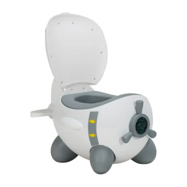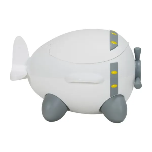 Superhandig voor thuis, op de camping of bij de oppas. Dit vliegtuigje staat stevig op zijn poten mbv anti-slip dopjes, de scharnierende deksel zorgt meteen voor een extra steuntje in de rug. Gemaakt van een mooie vriendelijke matte kunststof. Het uitneembare potje is handig om na elk gebruik gemakkelijk onder de kraan te kunnen reinigen, evenals de comfort zit-ring.