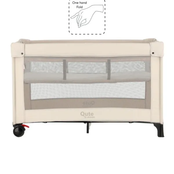 Het Qute Q‑dream Easyfold campingbedje voldoet aan alle wensen die denkbaar zijn bij een praktisch campingbed; dankzij het Easyfold‑systeem met één centrale knop, waardoor inklappen en uitklappen moeiteloos verloopt. Ideaal voor drukke ouders en grootouders, dit bedje maakt eindeloos ploeteren verleden tijd.