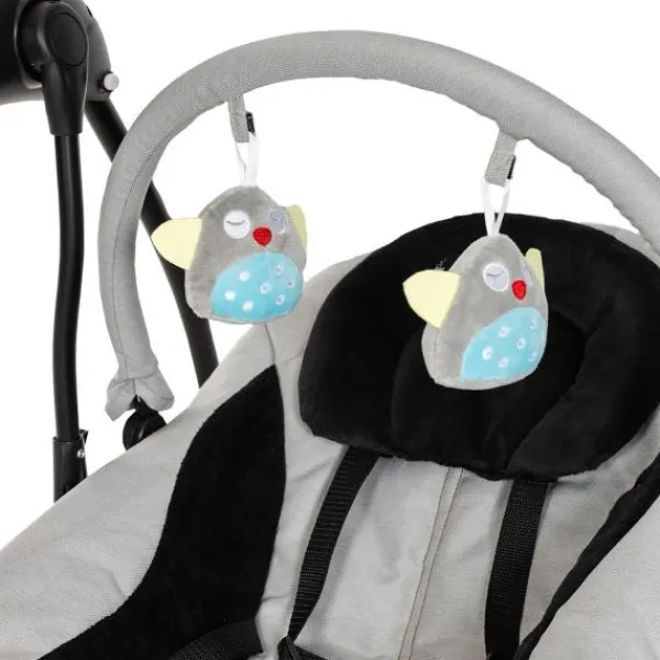De Q-swing is uitgerust met leuke speeltjes, verschillende zitstanden, meerdere snelheden en leuke melodieën. De comfortabele bekleding met de meegeleverde hoofdverkleiner zorgen ervoor dat het kind op een ergonomische manier kan zitten of liggen.