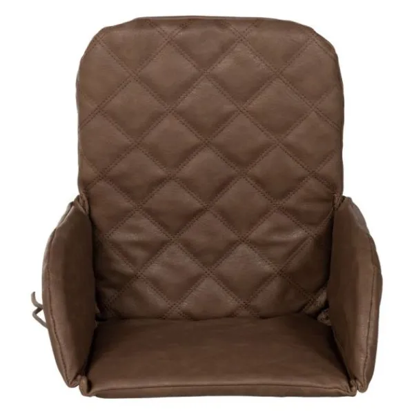 Dit stoelkussen heeft een gave doorgestikte leatherlook in taupe. Het materiaal is makkelijk afneembaar en past super mooi bij het interieur.