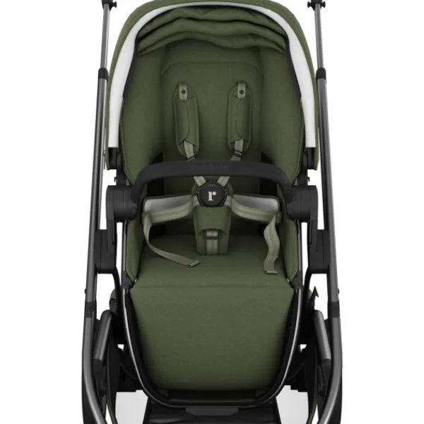 Beide zitjes bieden dezelfde hoogwaardige functies: ademende meshpanelen in rug- en zonneluifels, ergonomisch 5‑punts harnas met gevoerde banden, verstelbare voetsteunen en verstelbare rugleuningen — allemaal met één hand instelbaar. De zitplaatsen zijn geplaatst op 72 cm voor oudercontact en comfort. Vering op de voor- en achterwielen zorgt voor een soepele rit op diverse ondergronden.
