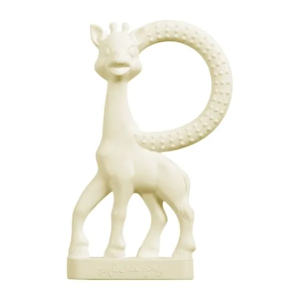 Sophie is gemaakt van 100% natuurlijk rubber, wat het ideaal maakt om het pijnlijke tandvlees van je kindje te verkleinen. Ook zit er in dit pakket een bijtring van Sophie de giraf met een vanillesmaak.