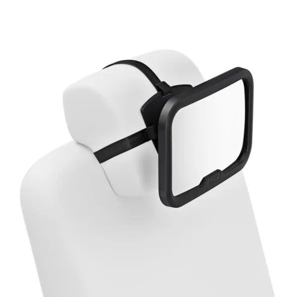 Met de Thule spiegel kan je je kindje in de gaten houden terwijl je zelf aan het rijden bent. Je plaatst de spiegel eenvoudig aan de hoofdsteun van de achterbank. Door zelf in de achteruitkijk spiegel te kijken, kunnen jij en je kindje elkaar zien. De spiegel is een handig item wanneer je kindje achterwaarts in de auto vervoerd wordt. Naast dat het voor jezelf handig is om je kindje in de gaten te houden, kan je kindje zijn eigen spiegelbeeld ook zien in de spiegel. Extra leuk dus!