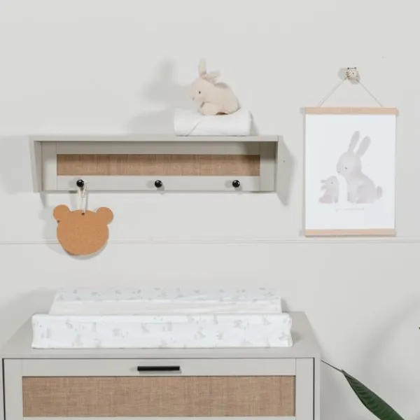 Babykamer Tampere van het merk TWF is een hippe kamer. Deze kamer is gemaakt van clay-kleurig MDF met jute panelen. De zwarte metalen handvaten maken deze moderne kamer helemaal af.