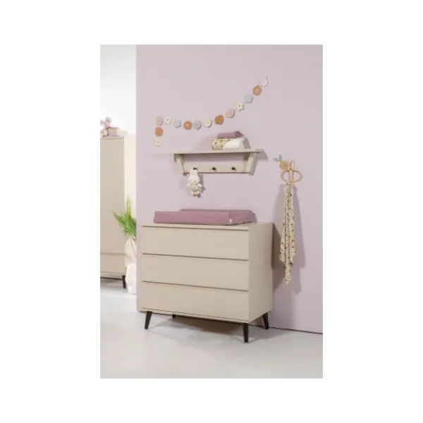 Met de praktische commode ben je volledig voorbereid op het verschonen van je kindje. De commode beschikt over 3 laden waarin je heel wat spulletjes kwijt kunt. De commode van deze kamer is uitgevoerd met het soft-close systeem op alle laden.