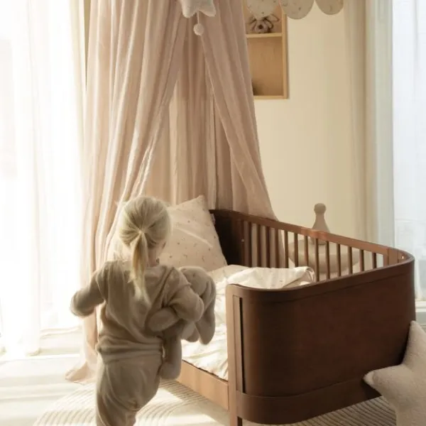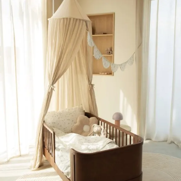 De soepelvallende combinatie van polyester en katoen zorgt voor een elegante look. De speelse boogjes aan de bovenzijde maken deze klamboe extra bijzonder. Of je hem nu gebruikt als decoratief element of als functionele bescherming tegen licht en prikkels, deze klamboe is een echte blikvanger in elke kinderkamer.