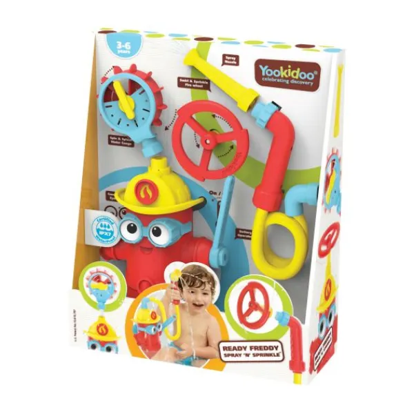 Je kindje wordt een echte brandweerman met de Ready Freddy Spray Sprinkle Brandweerpomp van het merk Yookidoo.